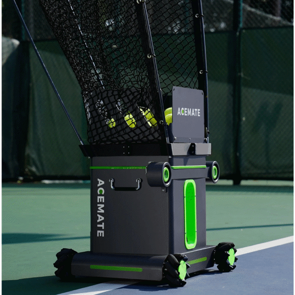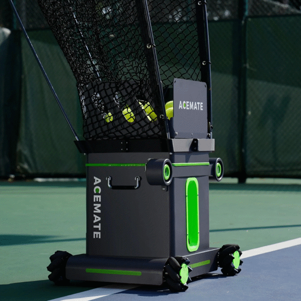The world's first AI-powered tennis robot for real rally play. Key features: - Ball speed up to 80mph - Smart movement 5m/s on the court to catch your balls - Less balls are required as the machine can move to catch your balls, and send another ball back at you desired location for real rally exp....